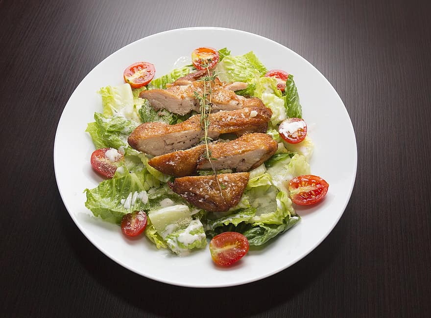 Salad + fruit + fried chicken